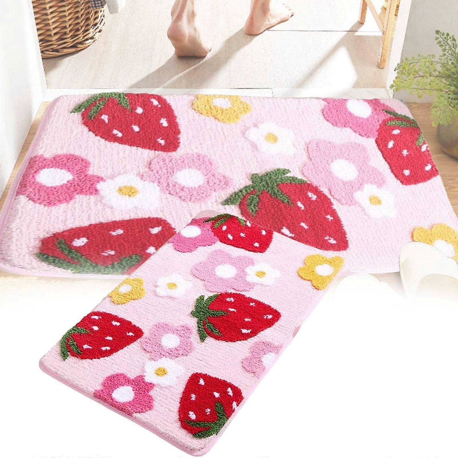 Yakbaofuo Soft Strawberry Bathroom Rug Mat, Non-Slip Absorbent Thick Plush Doormat for Bath & Bedroom, Compatible with Modern Decor