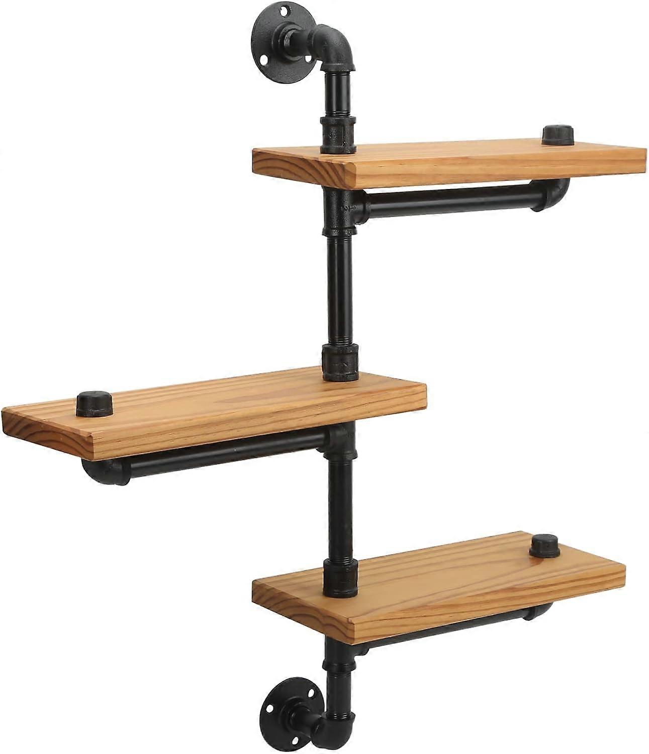 Wall Mounted Shelf, Vintage Style, Wrought Iron & Steel Pipe Rack, Industrial Metal Floating Shelves for Bedroom, Living Room, Wine Bar