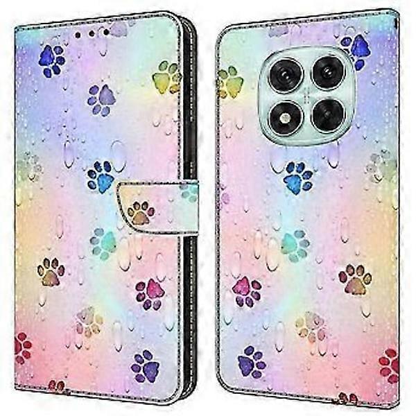 Leather case with pattern print, wallet stand and flip cover for compatible with Xiaomi Redmi Note 14 Pro 5G Cat Footprints