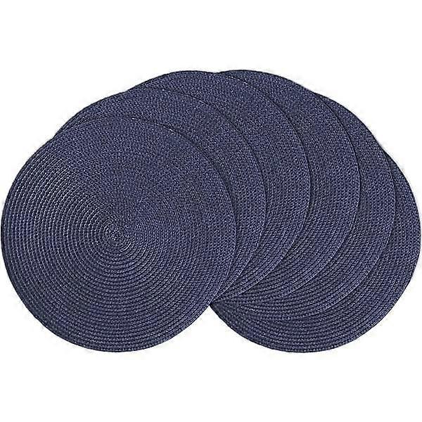 Round Placemats Set of 6, 38cm Diameter, Woven Heat Resistant Washable Placemats for Home Kitchen, Dining Table, Outdoor, Party, Navy Blue