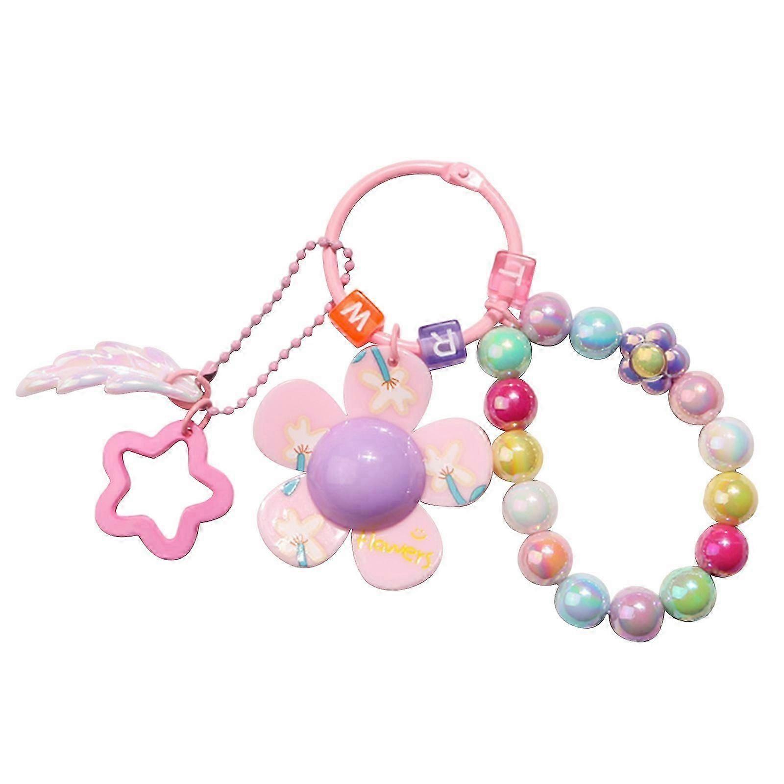 Colorful Hollow Star Keychain Unique Big Flower Pendant Keyring Beaded Wristlet Phone Decor Keyring for Friend Couple