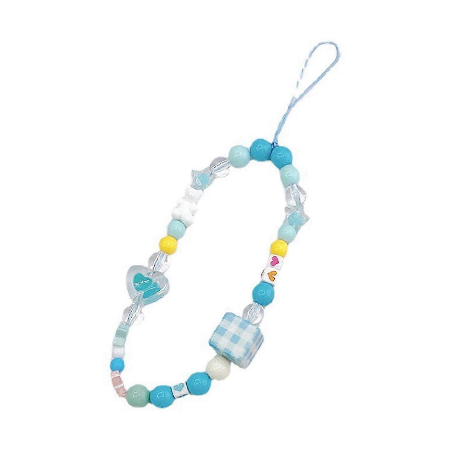 DIY Handmade Cute Phone Charm Y2K Women Candy-Colored Round Square Beads Lanyard Loves Heart Pendant Cartoon Accessories
