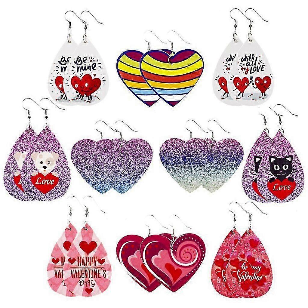 10 Pairs Valentines Day Love Heart Gift Earrings for Her Faux Leather Teardrop Earrings Newest Faux Leather Earrings