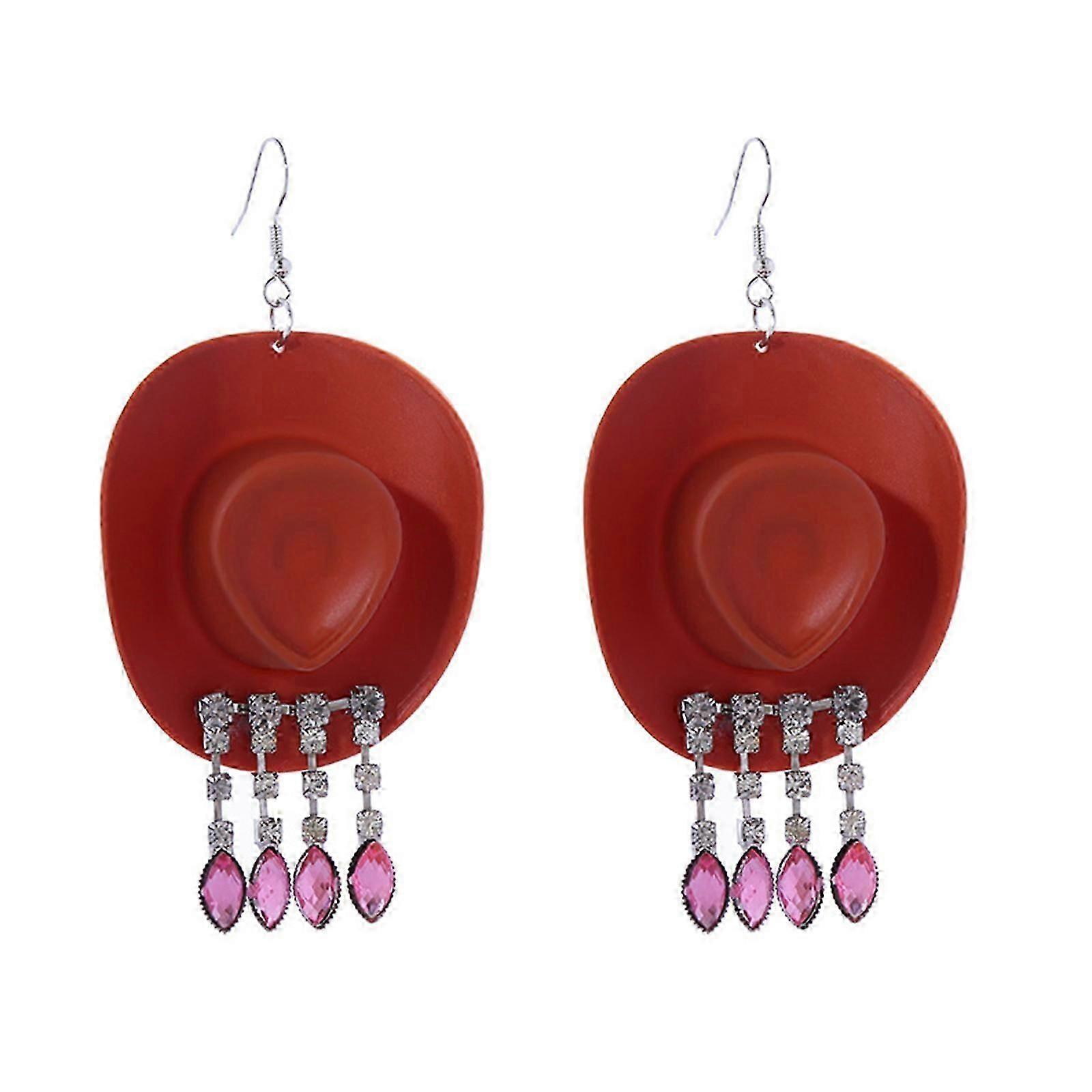 Cowgirl Earrings Cowboy Hats Drops Dangle Earring Rhinestone Fringe Earring Chic Cowgirl Hook Earring Jewelry Gift pink heart
