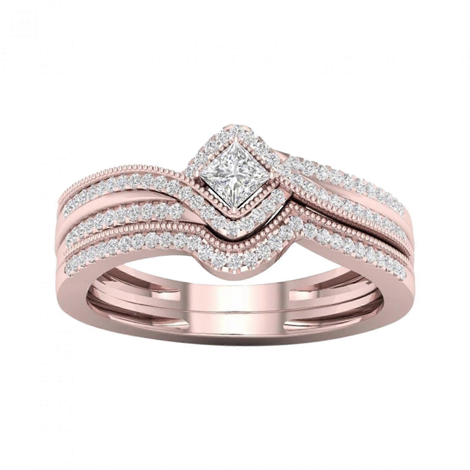 Bouanq Ladies Shiny Full Diamond Ring Silver Gold Moissanite Wedding Bridal Ring Compatible with Elegant Jewelry for Women Valentine's Gift