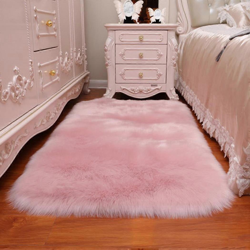 Yannee Luxury Soft Faux Sheepskin Fur Rugs for Bedside Floor Mat Area Rug Plush Sofa Cover Throw Rug for Bedroom Pink