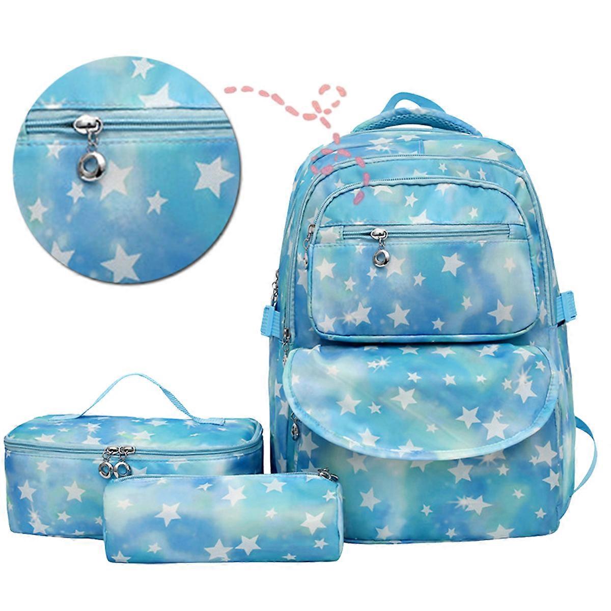 3Pcs School Bags Bookbag Pencil case Women School Set with Lunch bag Pencil Case-Blue
