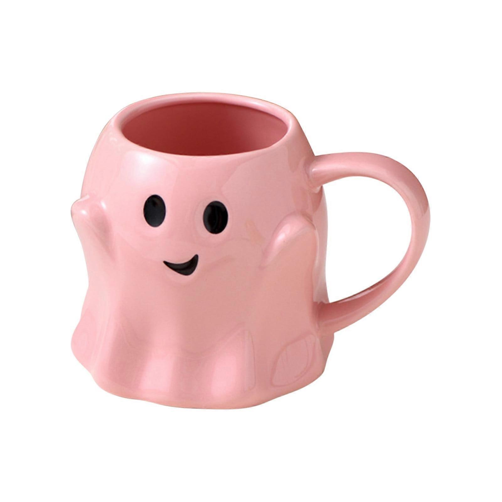 Ceramic Coffee Mug 14oz, Cute Ghost Design, Halloween Gift, Compatible with standard cup holders, for Adults, Kids, Women, Pink