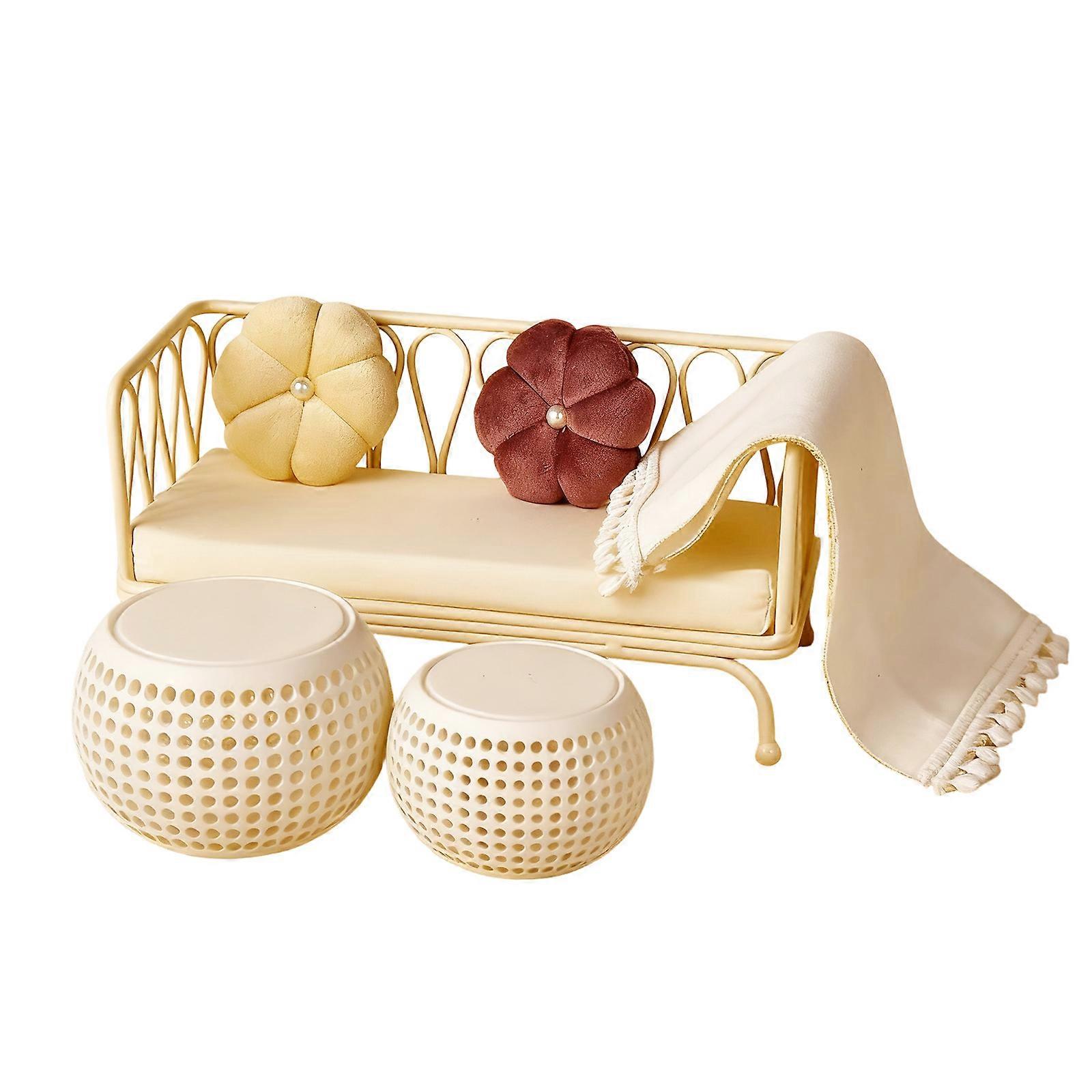 1/12 Miniature Sofa Set For Doll House Living Room With Removable Fabric Cushion Metal Frame Kids Pretend Play Furniture White Set