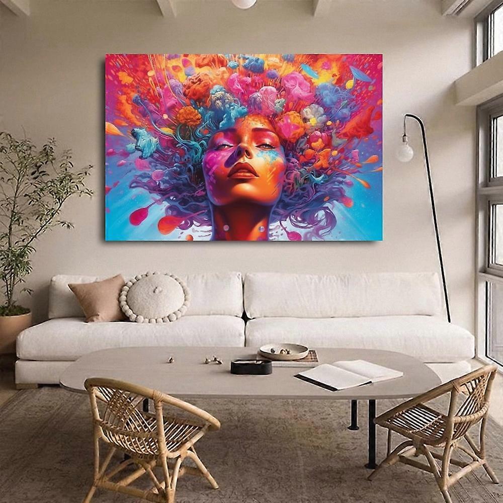 A Woman's Face Adorned With Multicolored Flowers Canvas Poster Bedroom Decor Sports Landscape Office Room Decor Gift,Frame-style,16x24inch(40x60cm)