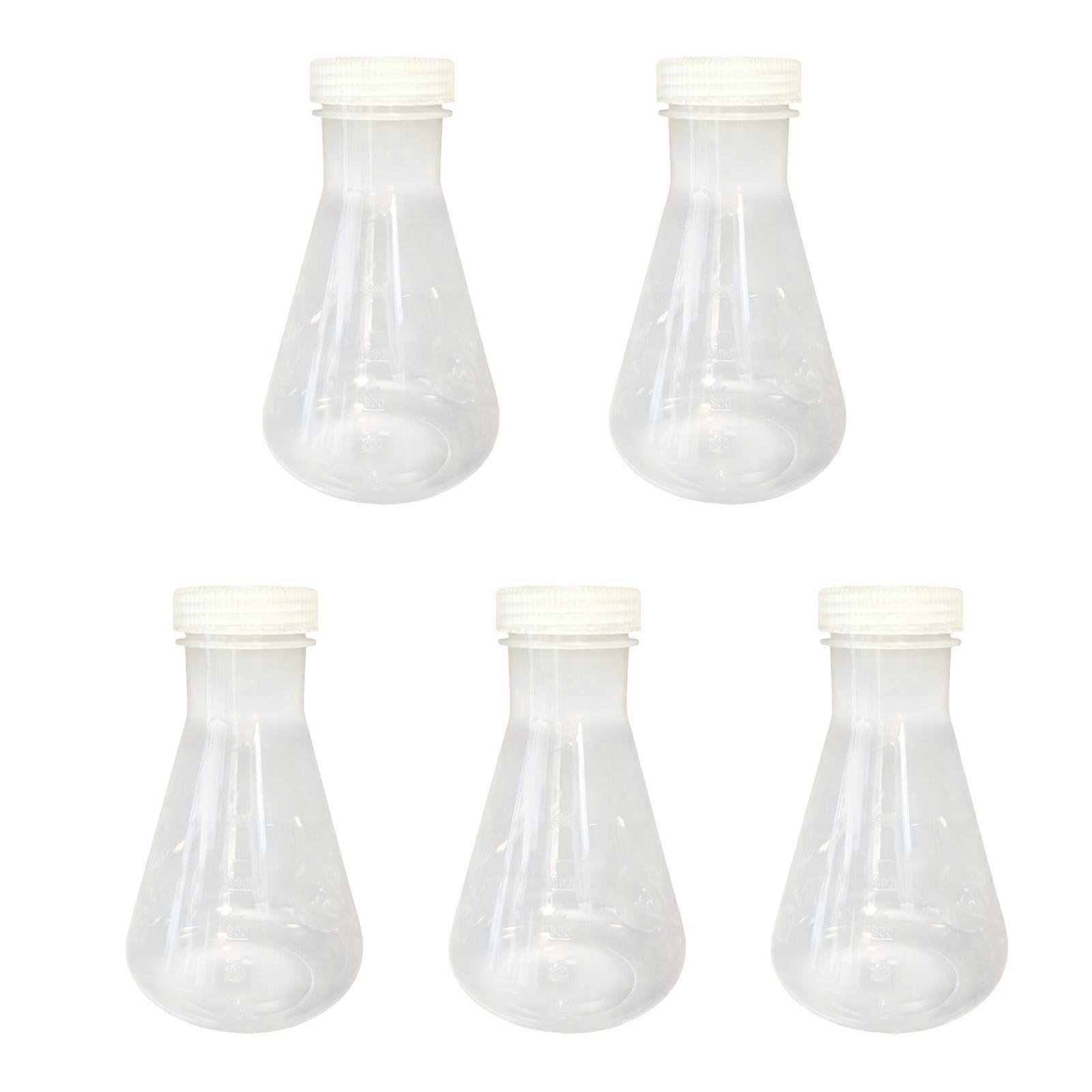 5Pcs Triangular Shape Clear Plastic Flasks with Leakproof Lid Multipurpose Graduated Flasks for Classroom Experiment Multicolor