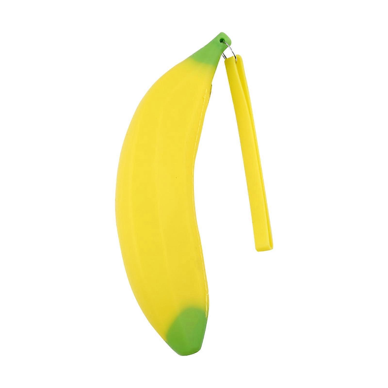 Banana Shape Big Capacity Pencil Holder, Compatible with Makeup & Coin Storage - Yellow Silicone Zipper Pouch, 1 PC