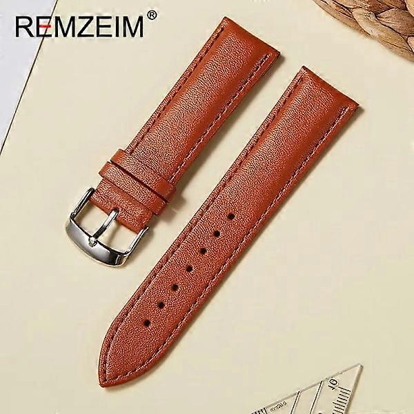 Genuine Leather Watch Strap 16mm 18mm 20mm 22mm Women's Watch Pink Red White Wristwatch Light brown Light brown Light brown 20mm