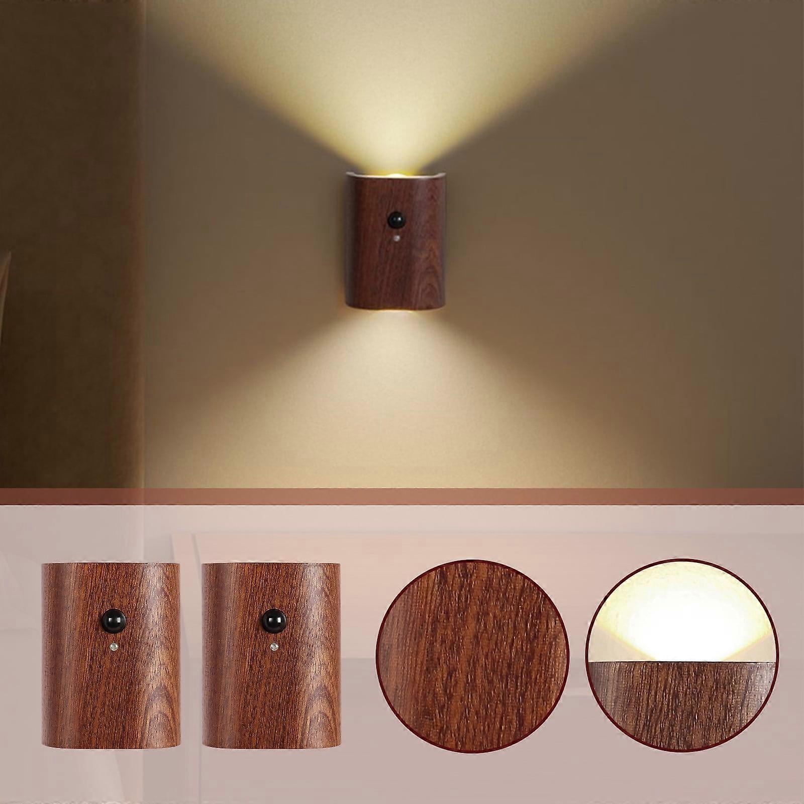 VALSEEL 2 Pcs Wood Grain LED Wall Light, USB Charge, Electromagnetic Suction Night Light, Compatible with Home Bedroom