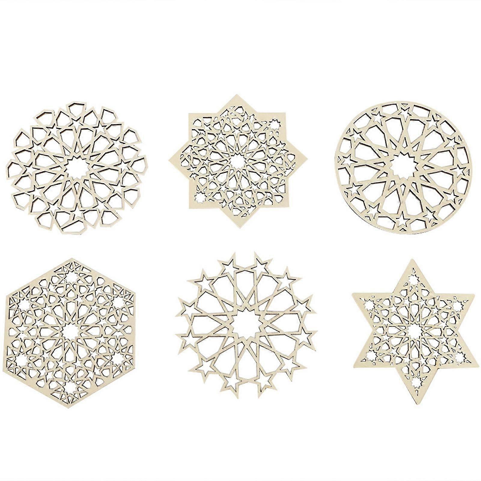 Features: Eid theme: Use these star-patterned cups pad to enhance the festive atmosphere.Unique coaster design: These cool star pattern decorations can decorate your desktop with a stylish personality.Versatile: Suitable for all types of water cups, beer cups, teacups or coffee cups, glasses and flakes. It can also be used for Gothic candles or other Gothic furniture.A great gift: It can be given to friends during Eid or other festivals to enhance friendships.High quality: Made of high quality boxwood, durable and heat resistant, fall and wear resistant. Notice:1.Actual color may be slightly different from the image due to different light effect2.Please allow 1-3cm deviation due to manual measurementMaterial:BoxwoodSize:10cm*10cm*0.25cmPackage List:6 Pcs*Stars Pattern Double Layers Cup Mats