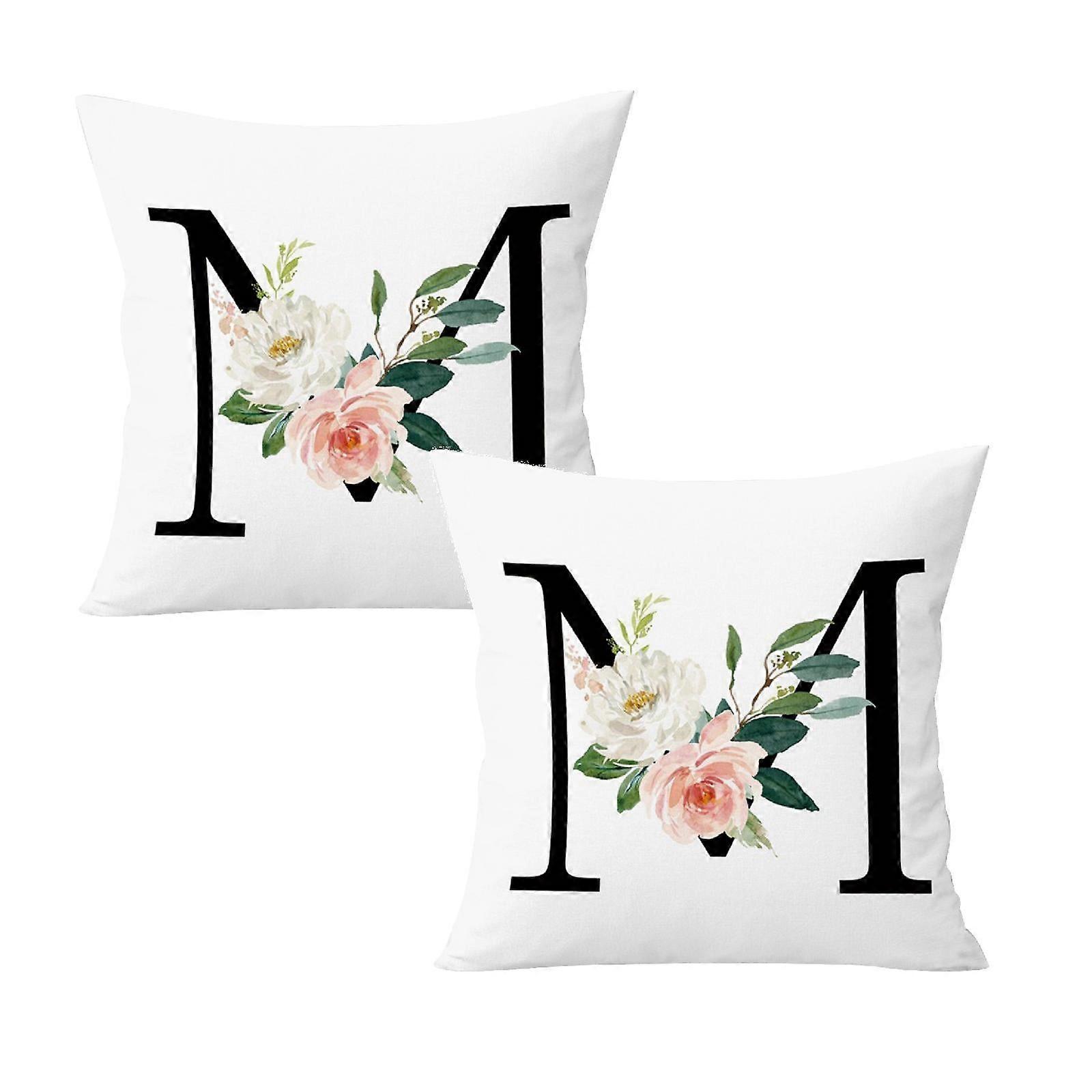 Xubond Fabric Throw Pillow Covers, Alphabet ABC Letter Flowers, 18" Square, Compatible with Home Decor, Sofa, Couch, Bedroom, Car Chair