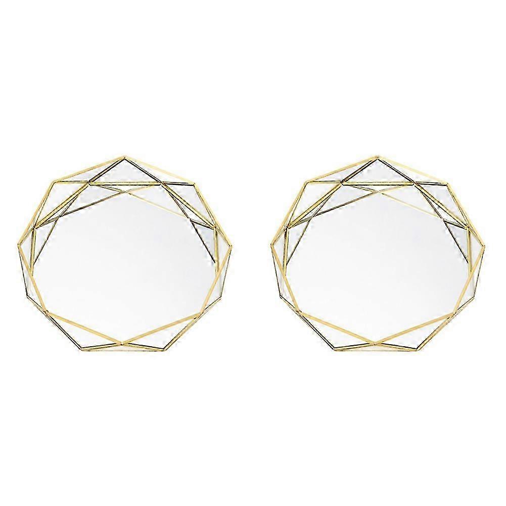 Round Glass Storage Tray for European Kitchen - Gold Geometric Metal Plate for Fruits and Small Items