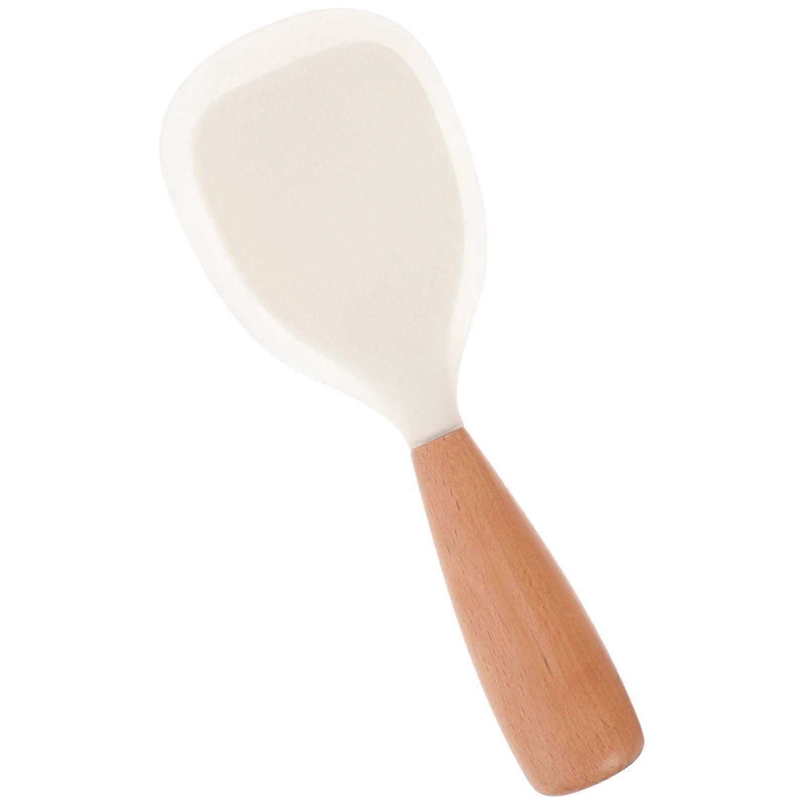 High Temperature Silicone Rice Spoon Durable Serving Spoons Cooker Sushi Silica Gel Wooden Handle