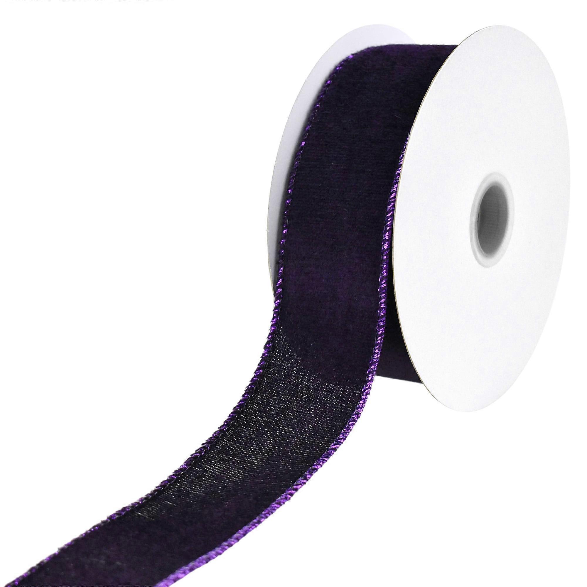 Homeford Christmas Lush Velvet Metallic Edge Wired Ribbon, 1-1/2-inch, 10-yard, Purple
