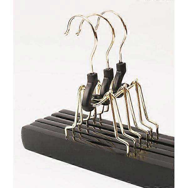 Wooden Pants Hangers 10-pack, Non-slip Hangers for Pants 360 Degree Swivel Hook Pants Hangers for Skirts, Jeans, Shorts Black with gold