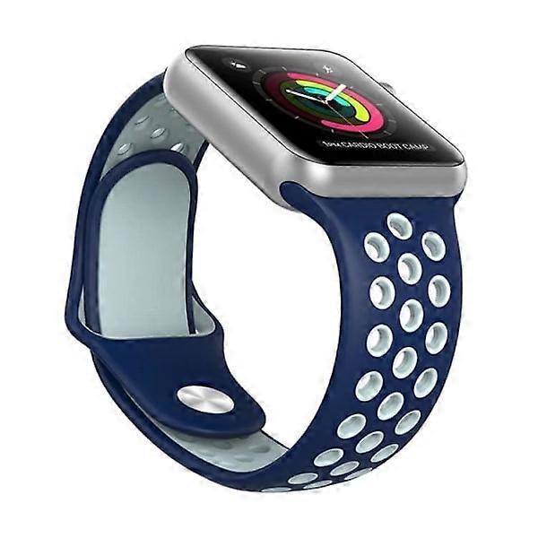 Compatible with Apple Watchwith Apple Watch 4 - 44mm - HUTECHs Stylish Silicone Strap Navy Blue/White L