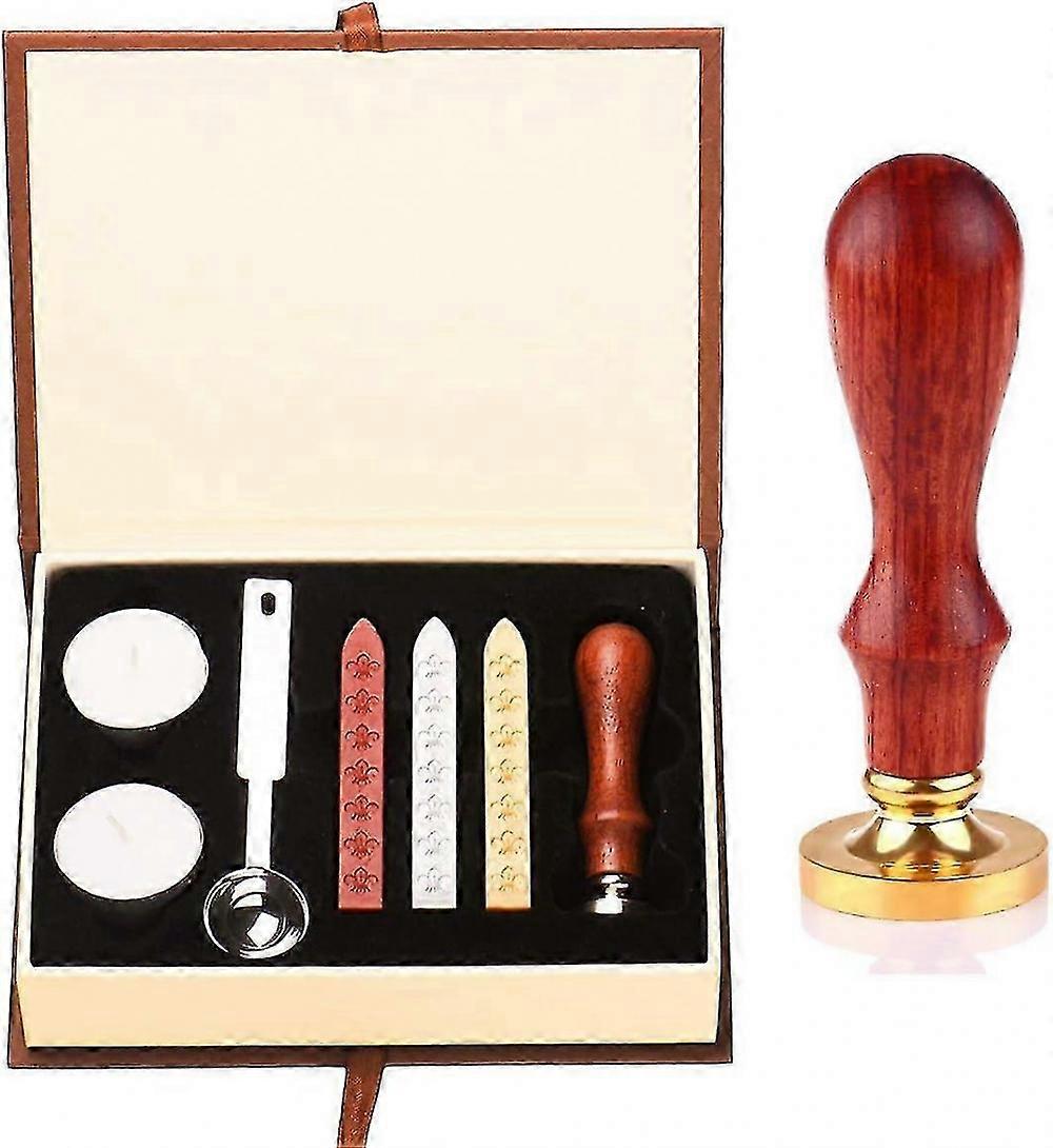Stamp Kit, compatible with Hp Fans, compatible with Hogwarts Themed Party - 1 Stamp With Wooden Handle + 3 Vintage Waxes + 1 Spoon + 2 White