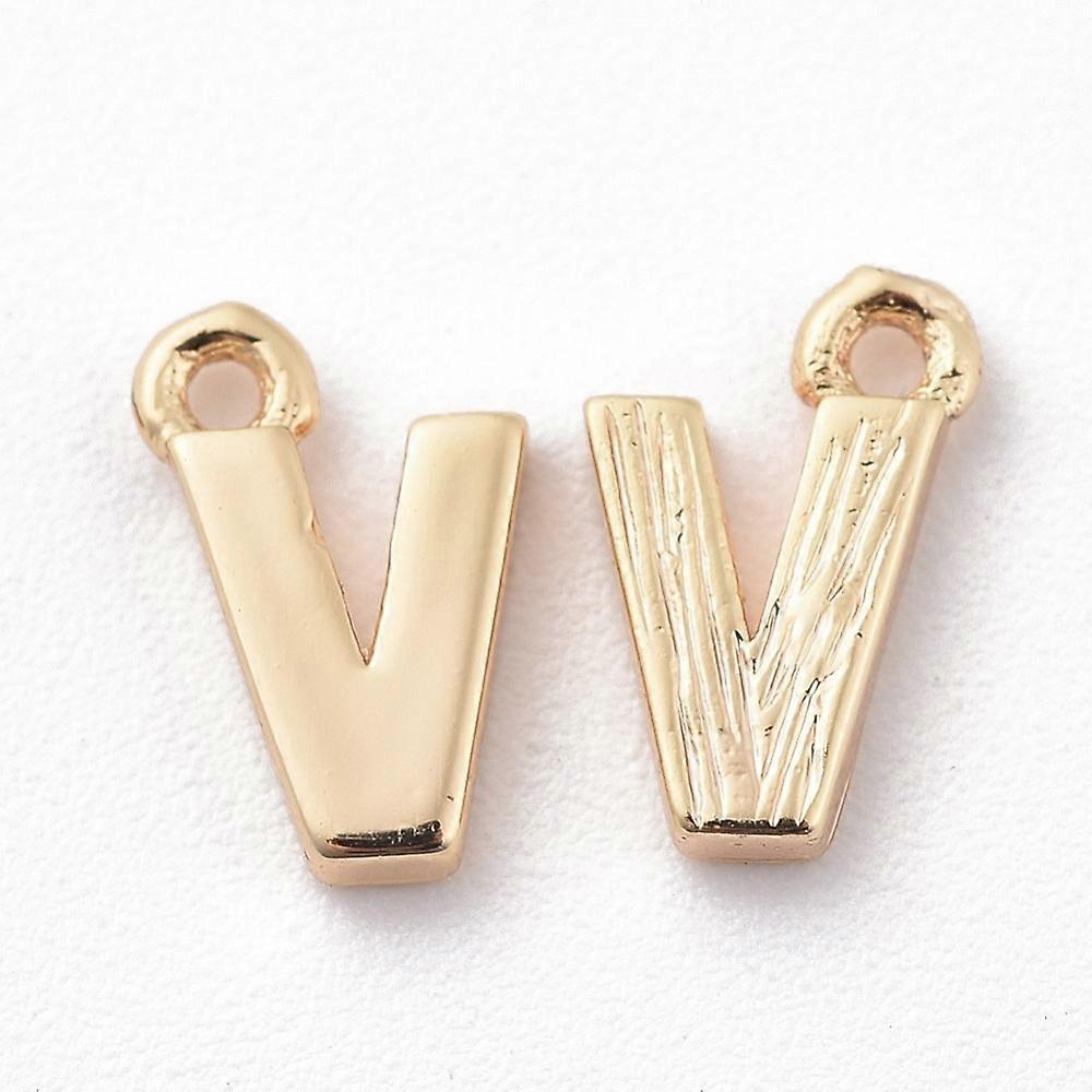 5pc Brass Charms Letter Nickel Free Real 18K Gold Plated Letter.V 8.5x5.5x1.5mm Hole: 0.8mm