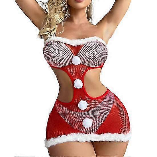 Sleeveless Nightdress for Women, Hollow Out Fishnet Sheath with Plush Trim