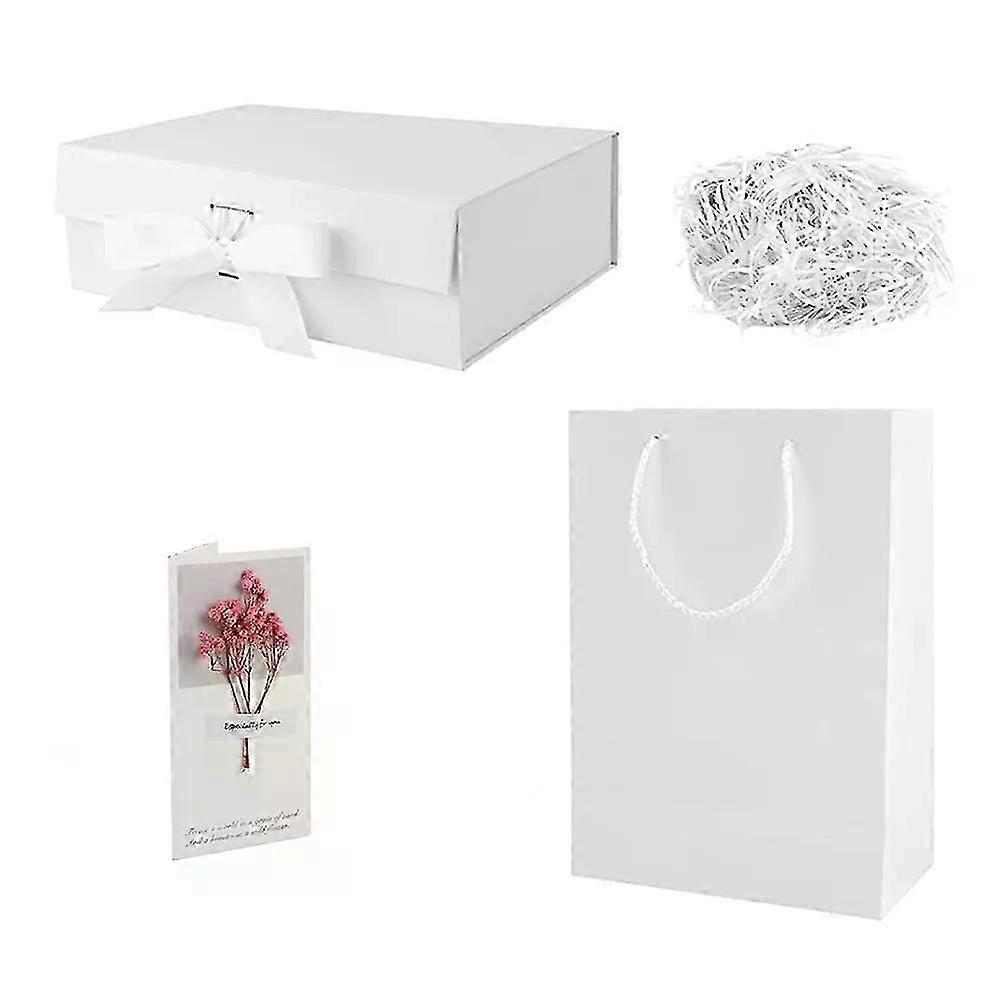 4 In1 Magnetic Foldable Gift Box(26x17x11cm)+bag(32x25x13cm)+20g Raffia Paper Shreds+dry Flower Greeting Cards(9x16cm)