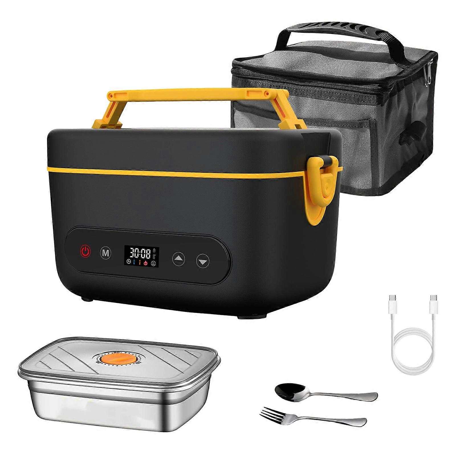 Wireless Food Heating Box Shockproof Stainless Steels Construction Inner Pot Lunch Warmer Outdoor Cooking Essential Black and yellow