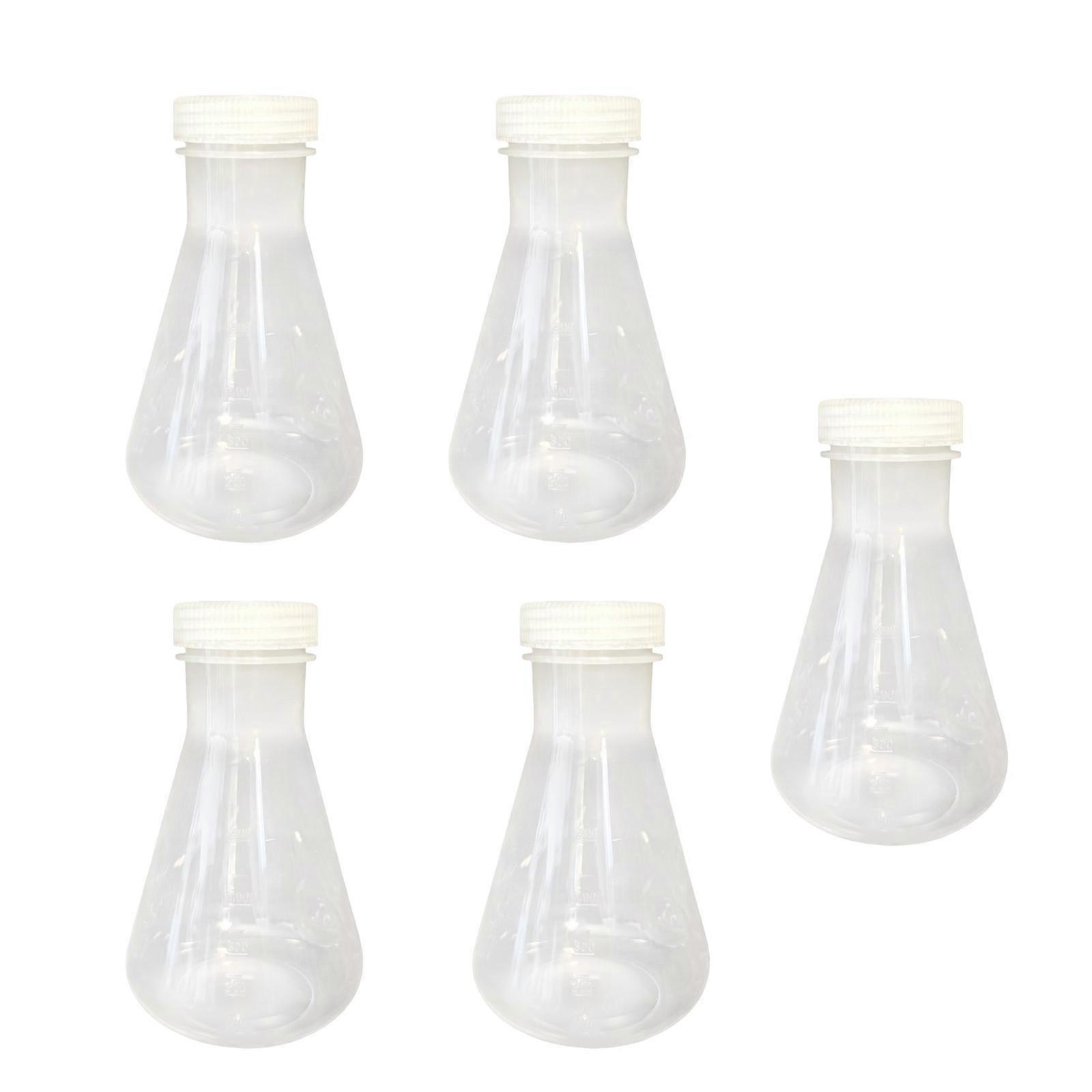 5Pcs Clear Plastic Graduated Flasks Triangular Laboratory Flasks with Leak Resistant Lid for School Science Laboratory Multicolor