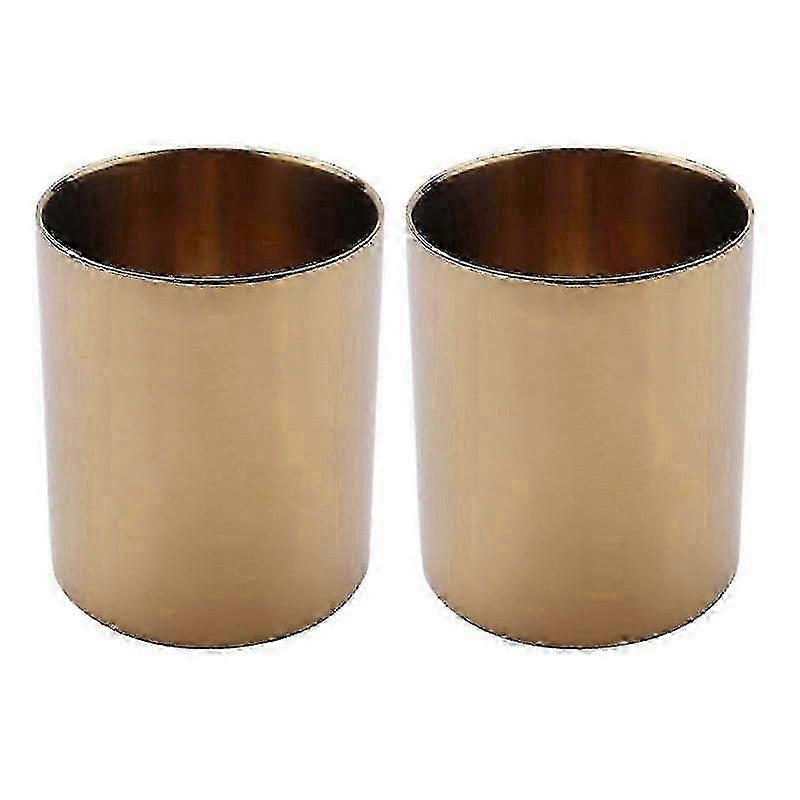 Set of 2 Gold Cylinder Flower Vases and Pen Holders for Stylish Home or Office Desks