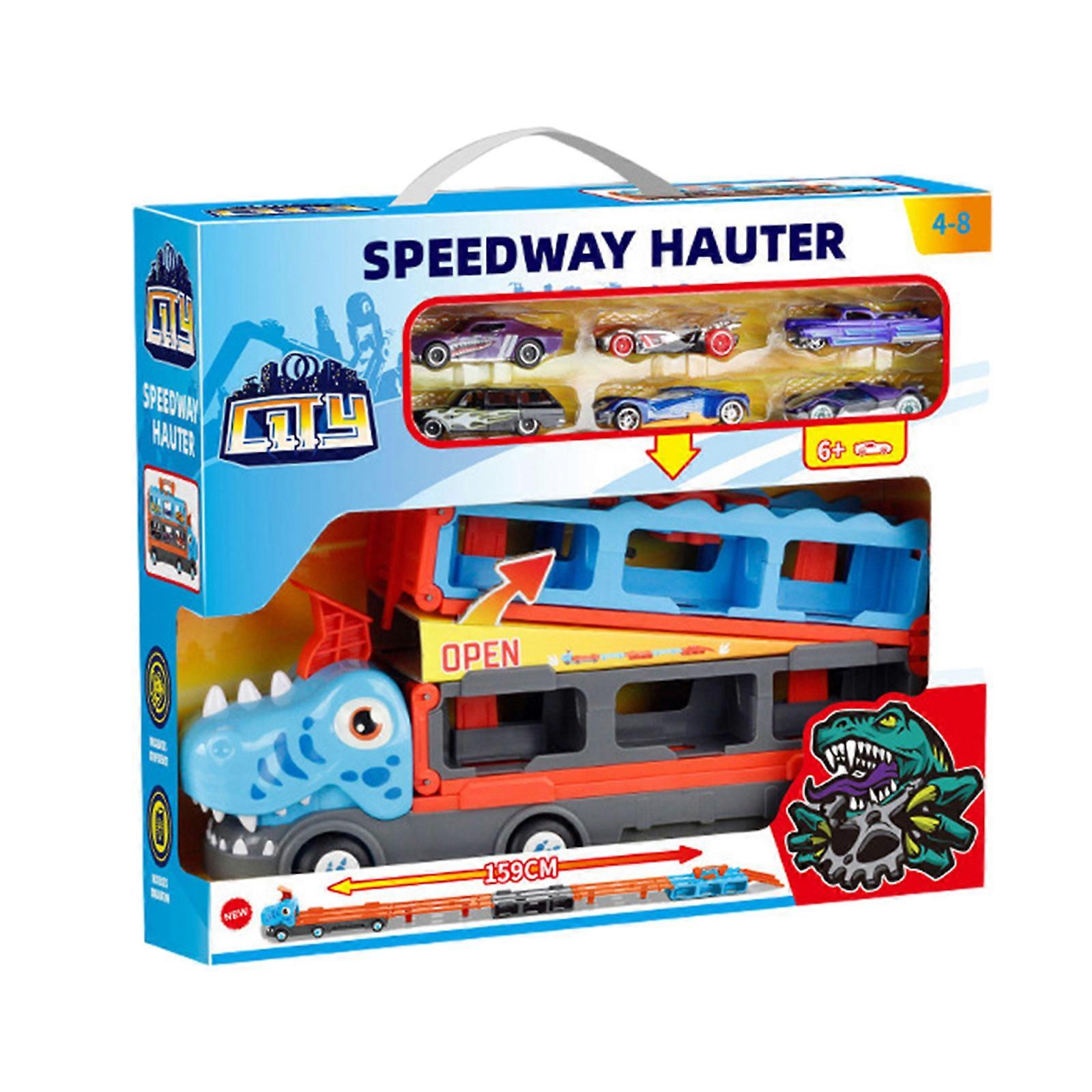 Cartoon Dinosaur Transport Toy Funny Pushing Vehicles Set with Handle Truck Toy for Boy Girls with Extensible Track Multicolor
