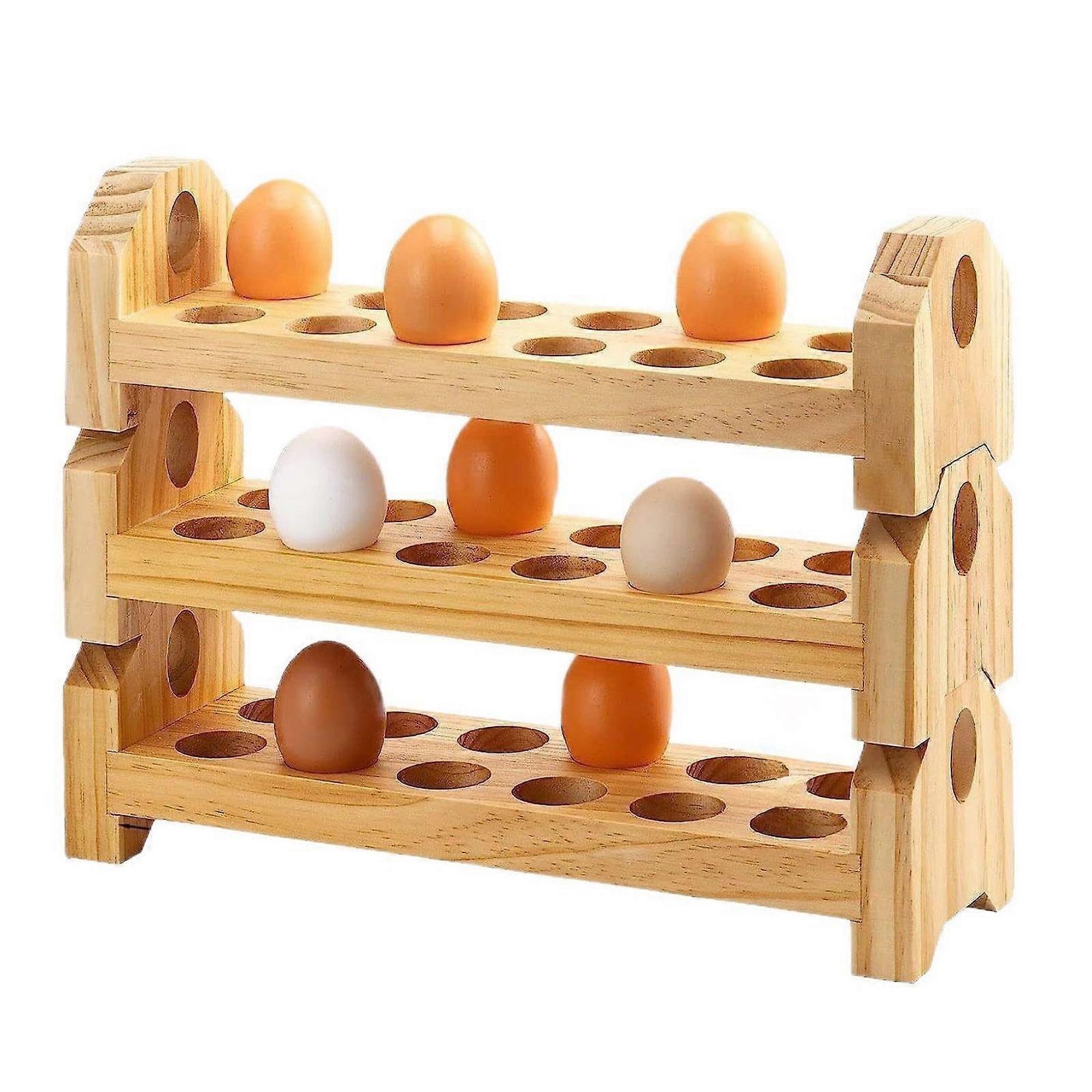 Household Wooden 3 Layer Eggs Display Stand For Kitchen Countertop Space Saving Desktop Eggs Storage Rack Multicolor