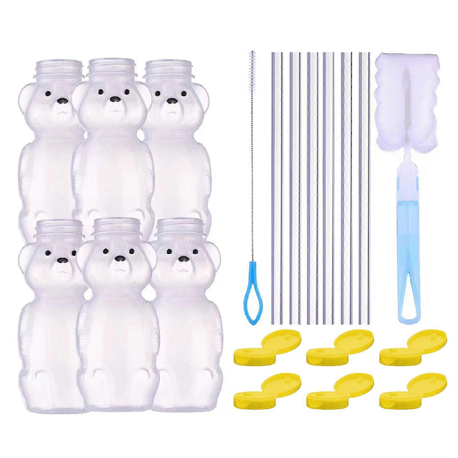14 Pieces Reusable Plastic Beverages Jars 230ml Adorable Bear Look Tight Closure Systems for Commuting Gym Office Use Yellow