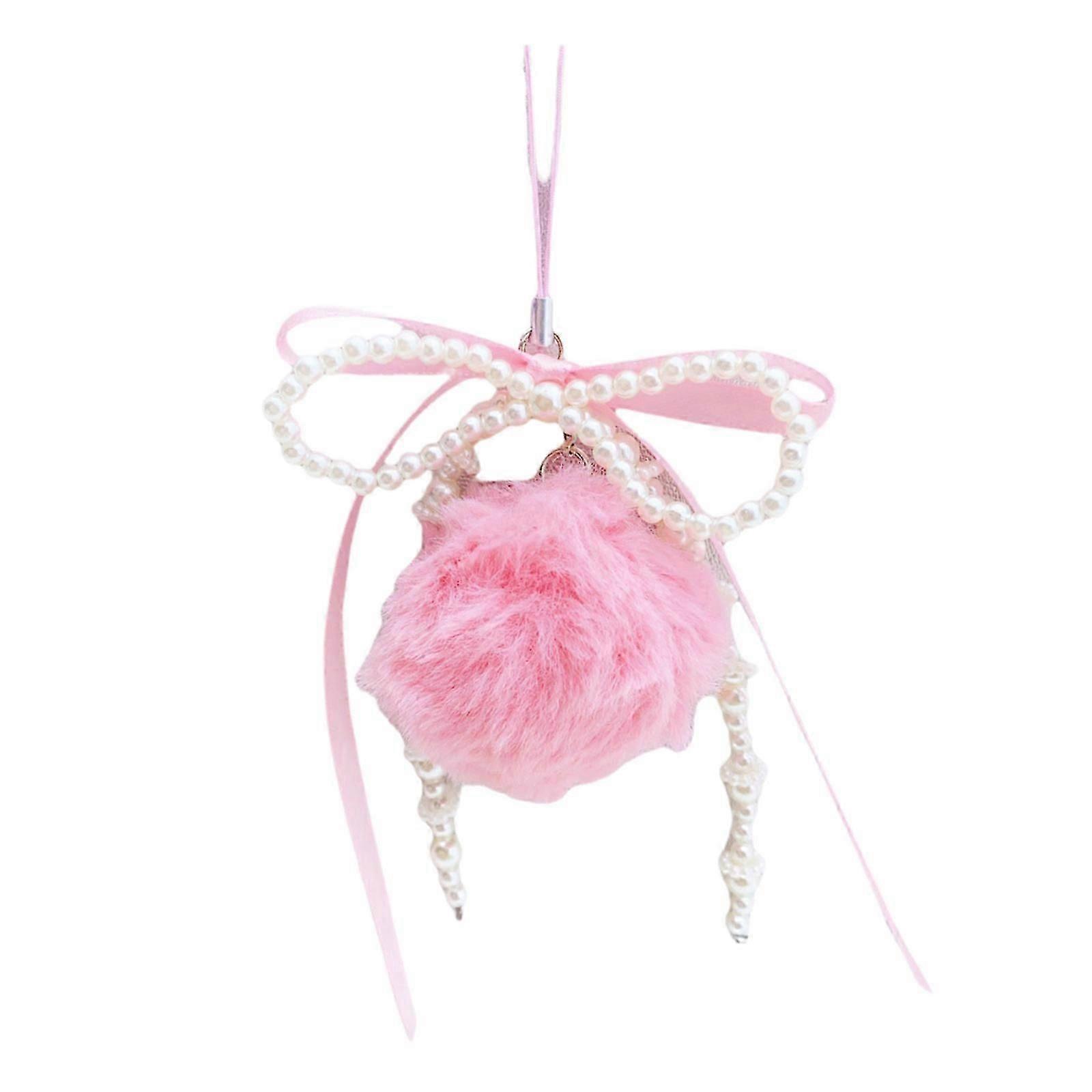 Stylish Imitation Pearls Bowknot and Plush Keychain Perfect Phone Accessory Suitable for Matching Fashion Outfits White