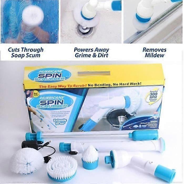 Cordless and rechargeable scrubbing brush with extension cord and 3 Acti brush heads