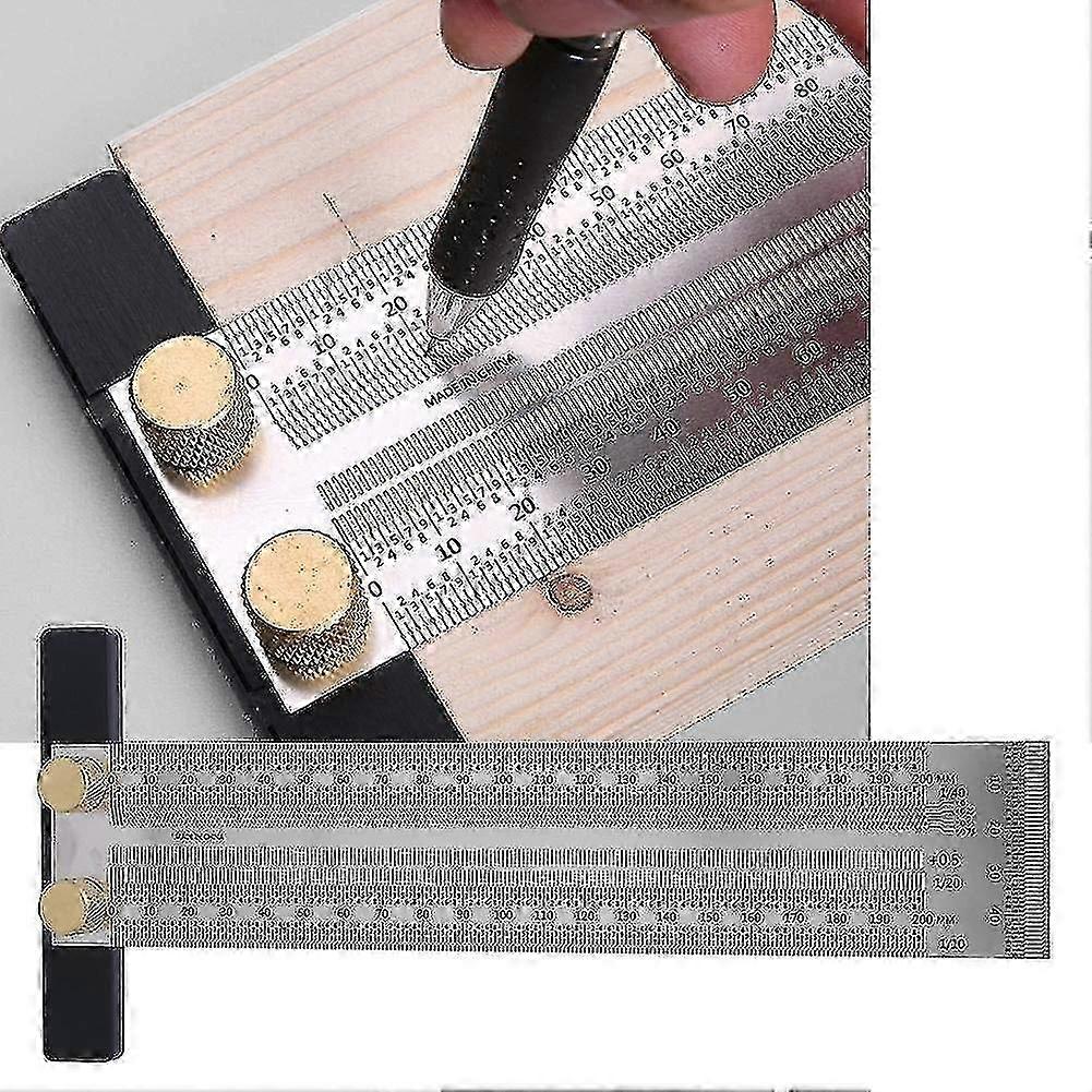 Stainless steel scribing ruler, T-shaped scribing ruler, precision woodworking measuring tool for locating and marking wood mortises (200 mm).