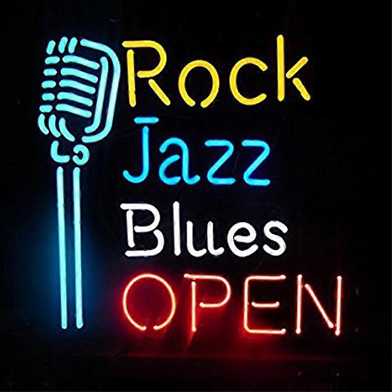 Rock Jazz Blues Open Microphone Real Glass Neon Sign - Music Theme Wall Art for Stage Bar, Studio & Man Cave Decor - 17"x14"