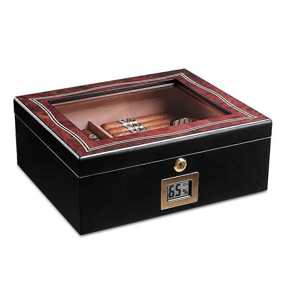 Large Capacity Cedar Wood Cigar Humidor with Glass Hygrometer and Airtight Seal
