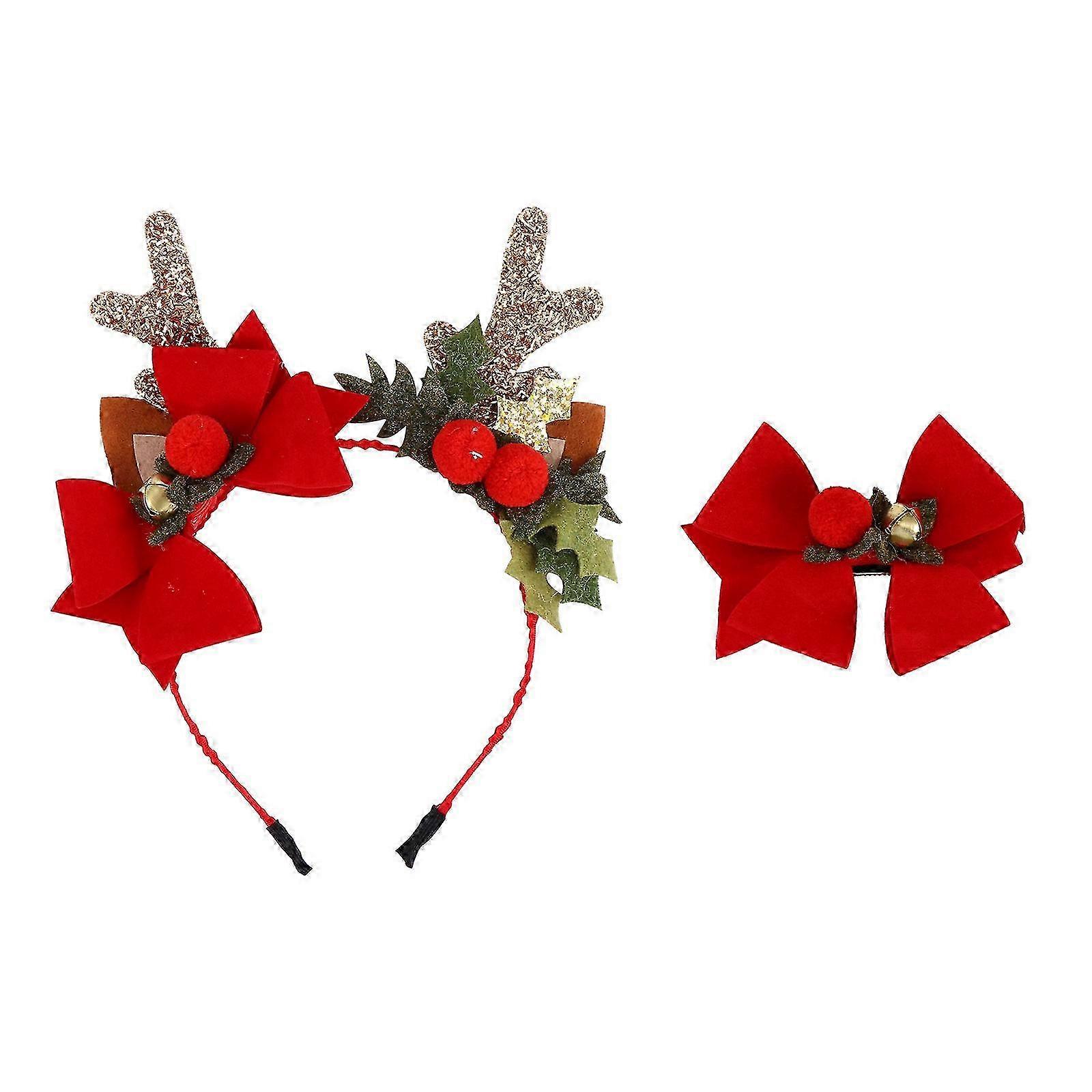 Christmas Headdress for Kids Red Party Headwear 2Pcs Set