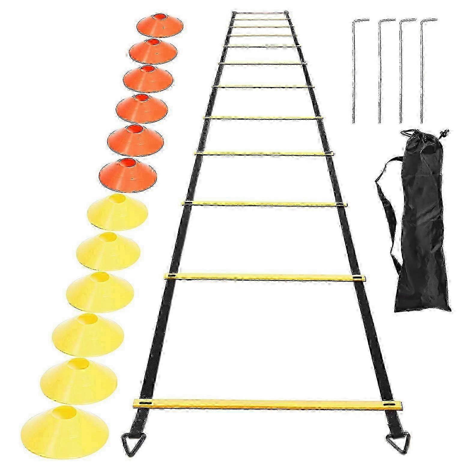 Sports Speed Agility Set 12 Disc Cones 4 Steel Stakes And Agility Ladder For Football Basketball Rugby Track 25-26S