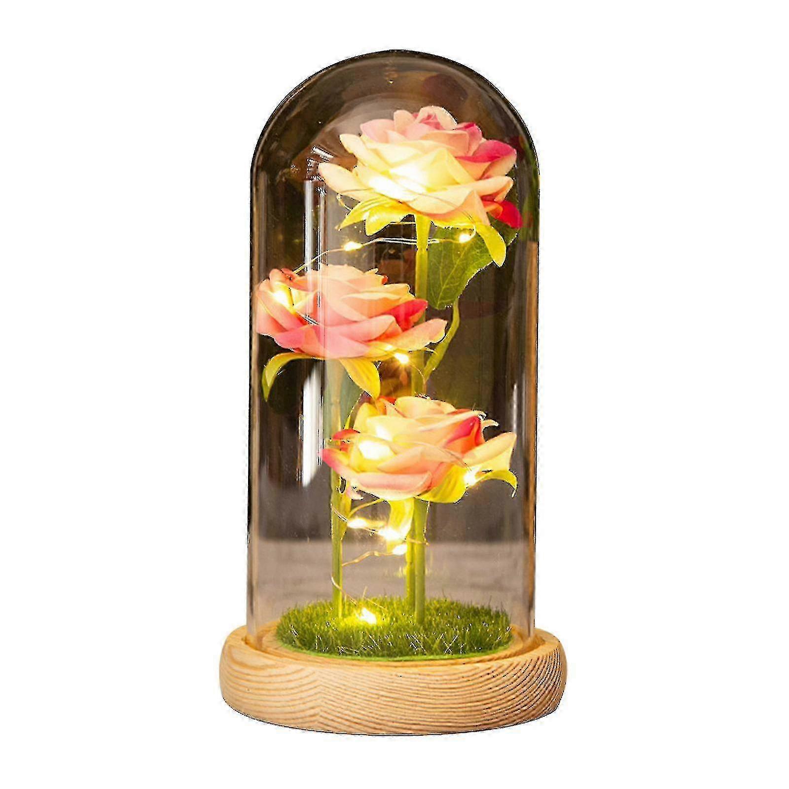 Red Rose In Glass Dome With Led Light Valentine's Day Birthday Anniversary Gift 25-26S