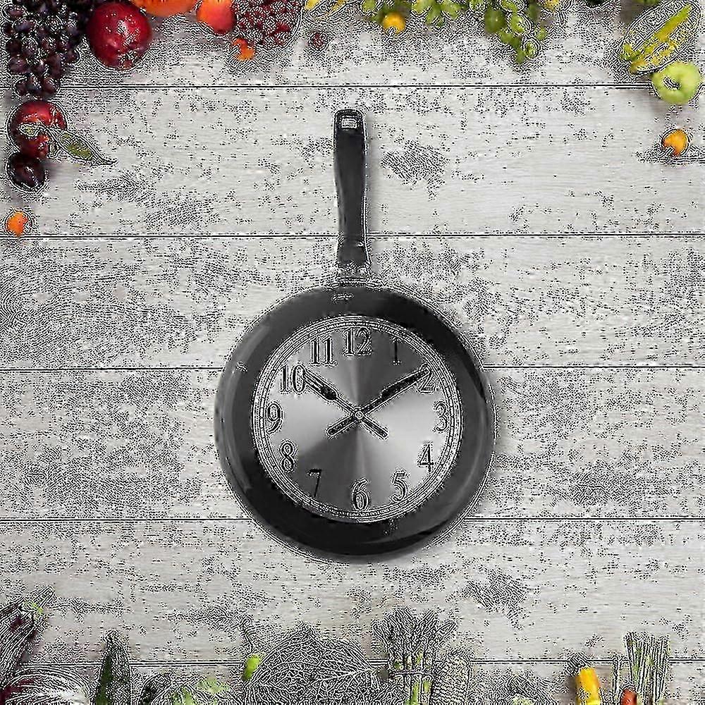 Clock, 10 Inch Metal Frying Pan Kitchen Clock Home Decor - Kitchen Themed Clock With A Screwdriver (black) 25-26S