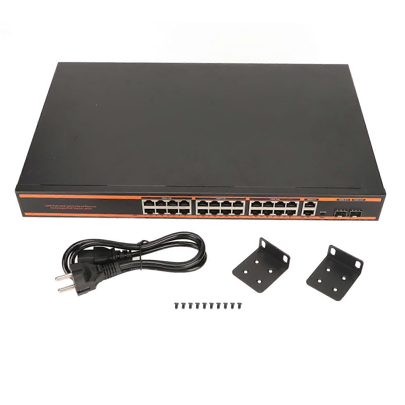 26-Port PoE Switch 100M 1000M Plug and Play with 2 Gigabit Uplink Ports IEEE 802.3af/at
