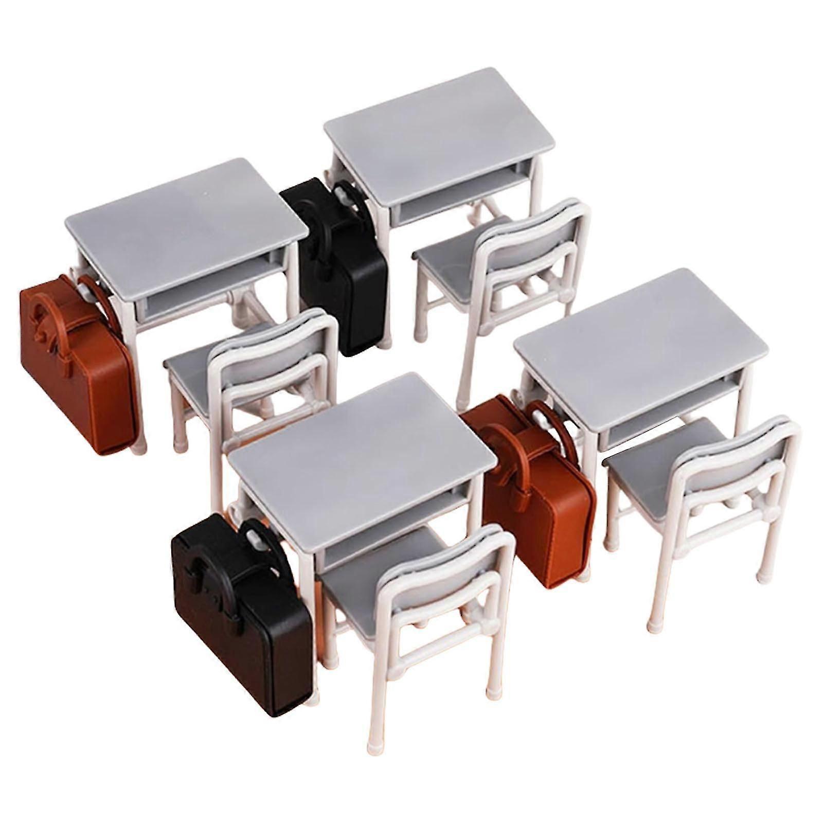 Interactive Mini School Scene Set 1:12 Scale Dollhouses Accessories With Desk Chairs Backpacks Woodeni