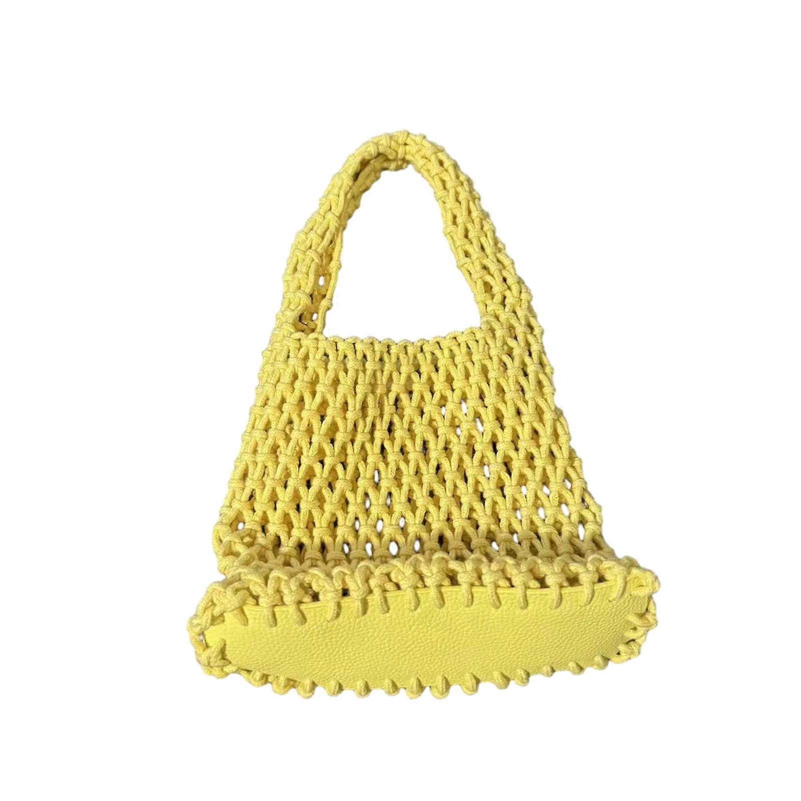 Hand-Woven Wrist Tote Bag Cotton Rope Braided Hollow Out Handbag Ladies Portable Wristlet Handbag