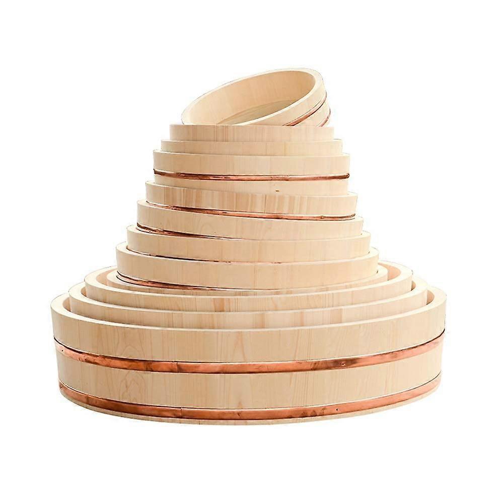 Wooden Sushi Rice Mixing Bowl with Copper Band for Fast Cooling and Moisture Absorption, 52x14cm