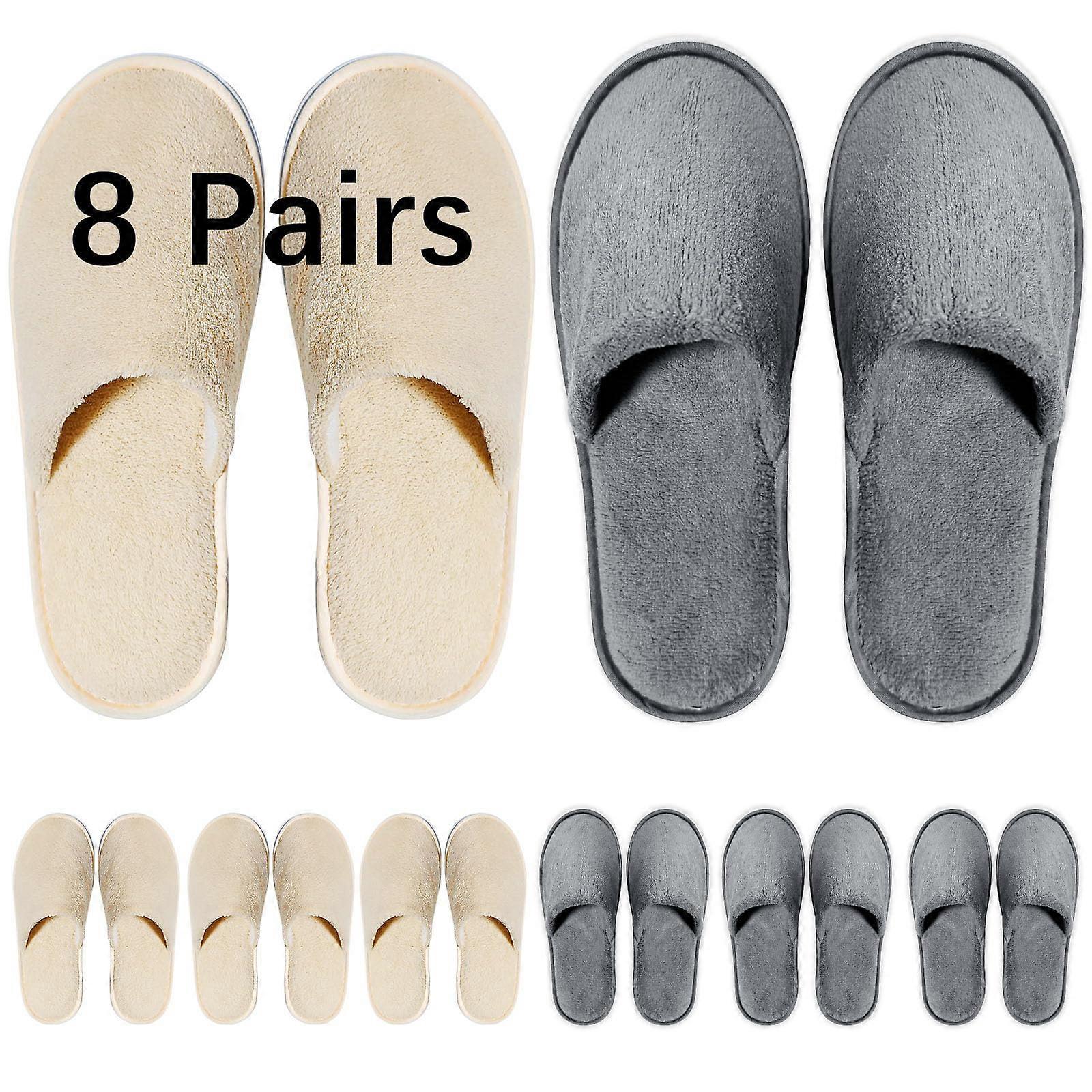 Guest Slippers Disposable Washable Reusable Velvet Non Slip EVA Soles for Hotel Indoor 8 Pairs