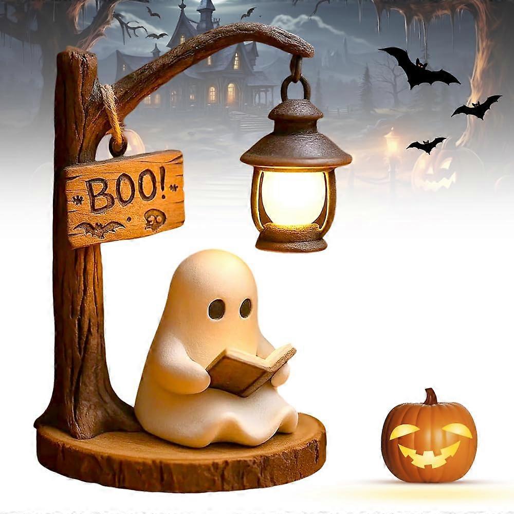 Halloween Ghost Lamp with Book, Warm Ambient Light, Cute Night Light for Bedroom or Bookshelf Decor